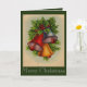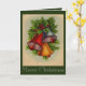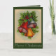 Este cartão de Natal tem sininhos de Natal muito brilhantes e coloridos com azevinho e frutos. Uma pitada de neve torna este um cartão de férias festivo.