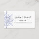 Personalize esses Cartões de visitas festivos do site do Casamento no inverno Blue Snowflake com os nomes pessoais da noiva e do noivo e o endereço específico do seu website de casamento. Entregue-os aos seus amigos e familiares para os guiarem até à url do seu site de casamento. Perfeito para a noiva e o noivo que estão planejando um tema elegante de dezembro, janeiro ou casamento no inverno de fevereiro.