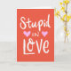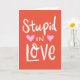Ótimo para o Dia dos Namorados, aniversários, ou apenas porque você sentiu algo e está pronto para admitir, este cartão de felicitações lê "estúpido de amor" na frente com áreas de texto de mensagem editável e nome dentro. Um coral vermelho quente faz com que a letra branca feita à mão e os corações rosa ilustrados se destaquem, mas podem ser alterados para qualquer cor que você quiser com a ferramenta de edição de design.