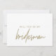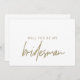 Esta carta de pedido de homem da caligrafia em ouro é perfeita para um casamento moderno. O design apresenta uma tipografia de ouro elegante, mas rústica, para um simples aspecto mínimo. Personalize o cartão com o nome da noiva e do homem de ponte. Escreva uma mensagem personalizada na parte traseira do cartão.