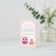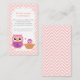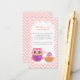 Encoraje os convidados a trazer um livro para crianças para o seu pequeno com este cartão de pedido bonito que você pode adicionar aos seus convites. Tem um belo par de corujas. A coruja-mãe está lendo um livro de histórias para dormir para sua coruja-bebê que está vestindo um boné noturno e que está balançando bem no ninho. Um padrão clássico de ziguezague em gesso e escolhas de cores doces de rosa e roxo o torna perfeito para mães que estão tendo filhas.