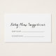 Cartão de Sugestões do Nome do Bebê para Caligrafi