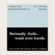 Esses cartões dão a você uma maneira discreta de passar a mensagem: você é visto, e você está exausta todos. O dentro da placa tem um guia prático de lavagem de mãos dos Centros de Controle e Prevenção de Doenças, e o link do site da CDC está na parte traseira. Coloque-os no topo dos urinais, ou coloque-os nas mãos daqueles que precisam de saber. Por favor.