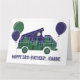 Crie um cartão de aniversário personalizado. Este cartão de cumprimentos dobrado está pronto para ser personalizado com sua própria mensagem na frente e no interior e apresenta uma ilustração de um ventilador de campista com uma tenda pop-up no telhado e é ilustrado para se parecer com uma noite enluarada na floresta com uma lua cheia em um céu índigo cheio de estrelas brilhando sobre um bosque de árvores sempre verdes.