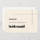 Um cartão de texto simples e elegante que mantém para obrigado sua dama de honra. Minimalista, porém impressionante: adote esta design tipográfica ligeiramente retrorreflectora para a sua papelaria de casamento, com uma elegante cor creme. Texto, cores e fundo totalmente personalizáveis.