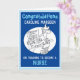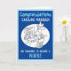 Parabéns a um Enfermeiro que concluiu sua formação em enfermagem. Ilustração de desenho animado engraçado de um Enfermeiro lendo um papel com uma competição de localizar a bolha. Cartão de parabéns para um Enfermeiro recém-formado.