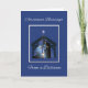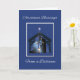 Mande o espírito do Natal para os entes queridos que estão a milhas de distância com este cartão sincero. Contra um céu azul-noite sereno marinho, o humilde estábulo da Família Santa e a estrela radiante de Belém nos lembram o significado sagrado da estação. Assim como a estrela guiou os sábios, deixe este cartão carregar suas bençãos quentes de Natal à distância, reacendendo a luz do Cristo em seus corações, mesmo de longe.