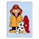 Menina bonita e bombeiro viu cachorro e hidrante.
