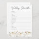 Um cartão de jogo moderno e de chá de panela para "Wedding Scramble" apresenta uma fonte de script romântica, fonte serif moderna e flores silvestres delicadas em tons suaves de rosa-pincel, amarelo, roxo, marfim e verde. Os convidados podem escrever as suas respostas nas linhas e marcar os corações se a sua resposta estiver correta. Verifique os itens correspondentes nas coleções "Chás de panela" e "Watercolor Wildflower". CHAVE DE RESPOSTA: REGISTRO / PADRINHOS DE CASAMENTO / ANEL / BUQUÊ / CHÁ DE PANELA / PRIMEIRA DANÇA / HONEYMOON / BRIDESMAID / CASAMENTO / BOLO / VESTIDO / VOWS / PARTIDO BRIDAL / BACHELORETTE
