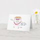Cartão de saudação paisagístico 5x7 - Viagens seguros - um pequeno cofre bonito está indo numa viagem, ingresso para o Havaí na mão, e pronto para encher o sol na praia. Use este cartão para qualquer pessoa que vá de férias, seja para climas tropicais ou para o Ártico. O desenho original é um lápis colorido no papel, digitalizado e colocado na placa.