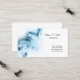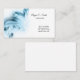 Este cartão de visita é mostrado em um padrão abstrato de cor azul com texto preto.