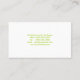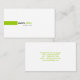 Um design moderno com um retângulo verde centrado ao lado esquerdo em um fundo branco com texto preto para o verde do nome e da harmonização para o sobrenome. A cor branca do fundo pode ser mudada ao personalizar, clique "edita" então o "fundo" escolhe então sua cor. A cor e a pia batismal de texto podem igualmente ser mudadas. A informações adicionais no verde de harmonização está no verso do cartão.