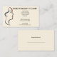 Um desenho simples e minimalista da cabeça de uma mulher em vermelho e preto, num fundo bronzeado, cria o cartão de visita perfeito para uma clínica feminina. Também poderia ser usado para um spa, ginástica feminina, ou salão de beleza. As costas também são bronzeadas, com espaço para uma consulta.