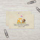Um cartão de visita com uma ilustração fofinha com veado bebê e um pequeno esquilo segurando uma bolota e uma borboleta voando sobre suas cabeças. Estas adoráveis criaturas de floresta em pé sobre uma grama com alguns cogumelos brancos perto de seus pés. O fundo tem um papel kraft castanho.