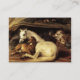 Reelaboração elegante e clássica do pintor inglês Sir Edwin Henry LANDSEER, 18. Belo cavalo árabe oriental branco e seu potro com cachorros, macacos em uma tenda árabe em cores vibrantes castanhas, brancas e vermelhas.