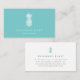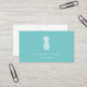 O design moderno de chic mostra uma ilustração de abacaxi branco em uma turquesa rica, o fundo azul de ovo de robin. Adicione duas linhas de texto personalizado à frente e personalize a parte traseira com os detalhes de contato do seu cheio em cinzas suaves sob uma ilustração menor do abacaxi lacrimogêneo. Perfeito para profissionais do setor de design de interiores ou de hotelaria.