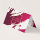 Os pincéis vermelhos profundos e rubis criam um pano de fundo abstrato neste modelo de cartão de negócios de designer. Seu nome ou nome comercial é exibido em uma caixa de ouro falso na frente para uma estética moderna. Este cartão de visita dobrado lhe dá o dobro de espaço para adicionar texto, usar para instruções de assistência pós-tratamento, para uso de promocionais e muito mais. Um cartão divertido e atraente para profissionais criativos. Arte e design © 1201AM Design Studio | www.1201am.com