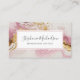 Este cartão de visita exclusivo apresenta cor d'água abstrato cor rosa e design dourado com o seu nome e cargo na frente e informações de contato na parte traseira. Perfeito para requisitos de negócios, marketing e contato.