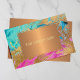 Trendy glamouroses, pinceladas de acrílico, modernas e glamourosas, pintura abstrato em turquesa de cor-de-rosa-rosa-brava, fazer de ouro quente, elegante cartão de visita feminina, com um retângulo geométrico de cobre, em ouro metálico, para um artista de maquilhagem | planejador de casamento | cabeleireiro | estilista de moda | decorador de interiores | designer | arquiteto | proprietário de butique | esteticista | blogueiro do estilo de vida | pintor. +++++++++++++++++++++++++ Perfeito para um aspecto elegante sofisticado de na moda. ++++++++++++++ Fácil de personalizar com seu nome comercial ou iniciais / monograma e detalhes de contato em ambos os lados!