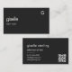 Cartão de visita preto de luxo com um monograma ousado, layout moderno limpo e código QR para conexão instantânea. Perfeito para advogados, advogados e profissionais da justiça que querem um cartão de marca de na moda, profissional e de escala superior.