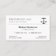 Alicia na cartão de visita de Direito com escala negra de Justiça.