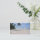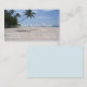Paraíso tropical. Palmeira sobre uma praia arenosa vazia, com o oceano e ondas além. Viagem agência cartão de visita