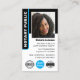 Faça uma impressão profissional com este na moda e o design moderno. Um modelo de dois lados personalizado com sua foto de identificação, nome, credenciais, lista de serviços e um código de QR digitalizável. Você também pode adicionar até três símbolos ou logotipos de acreditação. Personalize o texto para se adequar à sua empresa. Perfeito para um notário público, agente de assinatura de empréstimo, notário móvel, agente de entrega de confiança notarial certificada (CNTDA). Design cores impressas: azul brilhante, preto e branco. Compre a coleção on-line para obter ideias e suprimentos de produtos mais populares, projetados para notários!