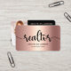 Apresente-se melhor aos seus clientes. A tipografia com script manuscrito simples de rico negro e a tipografia sans serif sobrepõem um fundo magro, sofisticado, preto, em cobre, metálico, cor-de-rosa, na frente deste cartão de visita gráfico ousado, elegante. Sua foto pessoal, código qr personalizado e cobertura de informações de contato preto dramático no verso. Personalize com seu nome de cheio e negócios na frente. Preencha o verso com a foto de sua escolha, código qr, números de telefone, endereço, email, site e contas de mídia social. Escolha entre cantos arredondados ou quadrados. Faz uma declaração chic, profissional e na moda onde quer que você vá. Basta adicionar sua url para o código qr, foto, digite seu nome, nome comercial e todas as suas informações adicionais na seção "Personalizar este Modelo", e você pode personalizar facilmente esta cartão de visita de código de foto qr. Por favor, me mande mensagens com quaisquer perguntas ou solicitações.