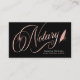 Elegante, cartão de visita de tendência para o agente de assinatura de empréstimo notário que apresenta um falso foil rosa dourado script de caligrafia manuscrito ''notary'' em um fundo preto. Personalize com um nome na frente e detalhes na parte traseira.