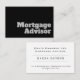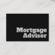 Cartão de visita de conselheiro de hipotecas. Cartões de visitas de design de tipografia nítidos e negros para um Supervisor de Hipoteca ou Profissional Financeiro. Concebido para transmitir o seu profissionalismo na sua empresa de consultoria hipotecária ou na sua função de consultor financeiro.