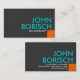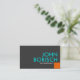 Cartão de visita cinzento escuro com turquesa moderna e combinação de cor alaranjada. O texto é turquesa e branco, e no canto direito inferior está um quadrado alaranjado. Eye o design horizontal contemporâneo legal atrativo, ambo impressão do lado.