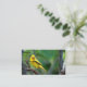 Macro foto deste adorável pássaro olhando para você! Pássaro amarelo maravilhoso colocado em um fundo verde macio. Faz um excelente cartão de visita!