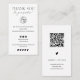 Um obrigado legal, simples e minimalista, de pedidos de negócios a preto e branco, com 5 estrelas a revisar com o layout vertical de corações. Adicione sua mídia social. Com uma fonte moderna de script de assinatura, todas as cores são editáveis, adicione seu logotipo e seu código QR.