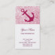 Cartão De Visita Âncora Náutica do Bokeh Rosa