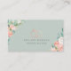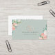 Flores impermeáveis e folhagem em tons de branco, cor-de-rosa, pêssego e verde com rosa de anéis de noiva, logotipo, cartões de visitas. A cor de fundo, mostrada em azul-aqua pálido, pode ser personalizada.