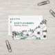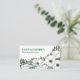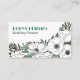 Cartão de visita floral branco com verde e eucalipto entre anêmonas brancas com seu nome em uma fonte de deco de arte verde-jade. cartão de visita de flores bonito com letra retrorada com ilustração de anêmonas brancas num estilo vintage inspirado contra um fundo branco com verde em tons de verde e vermelho-ferrugem. Personalize com seu código QR, informações de contato e, em uma fonte verde jade, seu nome.