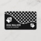 Na moda preto-e-branco com esquema de cores para cães andantes ou para animais de estimação sentados com cartão de visita-design com estampas brancas de pata para cães. A design na frente é dividida com uma linha ondulada divertida onde a parte inferior tem uma cor sólida enquanto a parte superior tem um padrão de impressões de pata de cão branco. Os cantos arredondados complementam o aspecto redondo da linha ondulada. Personalize as áreas de texto na frente e atrás com os detalhes de sua empresa.