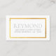 Fundo branco simples, limpo e claro (cor do papel), com seu próprio sobrenome ou nome comercial impresso no estilo de fonte elegante... faux gold frame.