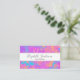 Expresse sua criatividade com este design cartão de visita de abertura de cor vibrante. Apresentando uma mistura energética de púrpura, rosa, laranja e azul em uma tinta em negrito ou com efeito brilhante, esta placa é perfeita para fazer uma primeira impressão memorável. A frente inclui uma faixa branca onde você pode personalizar seu nome e título, enquanto a parte traseira carregar o tema colorido com espaço para os detalhes de contato do cheio. Ideal para artistas, designers, criativos e profissionais que querem sua marca para pop com cor e personalidade.