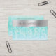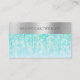 Cartão De Visita Aqua Iridescente Sparkle Bokeh com Prata Brutada