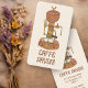 Mostre seu estilo com este design pintado manualmente na parte frontal e traseira da placa. Perfeito para compradas de café, padarias, cafés e negócios relacionados ao café. Adicione o seu próprio texto e altere a cor de fundo ou o tipo de papel para fazê-lo brilhar! Verifique meu compro para mais cartões de fidelidade, postais e muito mais! Avise-me se quiser algo personalizado.