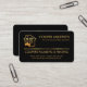 Um cobrir preto é acentuado por uma linha falsa de ouro perto do centro. Andar nesta linha de sucesso dourada é o logotipo dourado "canalização doméstica e aquecimento" que você pode usar. Seu nome prestigiado e uma opção de legenda de slogan que você pode mudar está no canto superior direito. Logo abaixo da linha de ouro está o nome comercial e seus contatos. No verso, o logótipo dourado está no topo, seguido do seu nome prestigiado e dos contatos. Todas as letras estão em ouro falso. Um design profissional para canalizadores a usar. #encanamento e aquecimento #encanadores #encanamento #serviço de encanamento #encanamento #empreiteiro #pipefitter #cachimbo #torneira #torneira #encanamento #zazzlemade