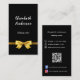 Um clássico fundo negro. Decorado com um arco ouro. Personalize e adicione seu nome, título e informações de contato. Adicione o URL/link do seu site ao código Qr. Com ícones do Facebook e Instagram. Texto branco.