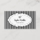Estes cartões de visitas elegantes e caprichosos apresentam um quadro ondulado desenhado à mão e polka pontilhado com um arco de tendência, sobre um fundo listrado preto e branco. A parte traseira do cartão de visita é preta e tem um código QR verificável. Perfeito para qualquer negócio ou ocupação feminina, de na moda, como spa, salão, moda, boutique ou vintage.