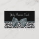 Uma sofisticada cartão de visita de impressão de leopardo preto e branco com uma fita de cinza elegante atada a um arco feminino. Personalize este design de impressão animal em moda adicionando o nome da sua butique.