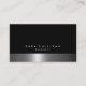 Esta notável habilidade profissional de arquiteto ousada cartão de visita de cromo negro apresenta uma elegante faixa de reflexão dourada na borda inferior. Seu nome e título aparecem logo acima dessa borda padronizada, sobre um fundo preto a jato. O mesmo tema padronizado aparece na parte de trás do cartão, exceto que a faixa está na borda direita. O logotipo da sua empresa e os detalhes de contato aparecem na seção preta da placa. Esta cartão de visita dá uma primeira impressão impressionante e é projetada para habilidades profissionais de comércio, habilidades comerciais, construção, construção, melhoramento doméstico, reparos em casa, serviços de reparo, escuro, preto, cromo, prata, temas elegantes e elegantes.