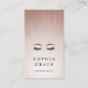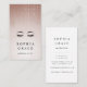 O Elegante cartão de visita vertical design apresenta a inscrição preta clássica em um fundo cor-de-rosa pincelado, enfeitado com fios de luzes falsas de folha de rosa dourada. Personalize com duas linhas de texto personalizado na parte frontal um par de pestanas e sobrancelhas luxuosas e adicione as informações de contato do cheio ao lado inverso. Uma escolha chique para artistas maquiadores, especialistas em lash, técnicos de brow, esteticistas e profissionais da indústria da beleza.