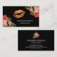 Cartão De Visita Artista de Makeup de Lábios Dourados Floral