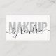Moderno e elegante Cartão de visita de maquiagem do artista. Personalize este design na moda com o seu nome ou empresa. Personalize facilmente todo o texto com seus detalhes e muito mais para obter uma placa de contato exclusiva e moderna para seus clientes, clientes ou quando estiver em rede em eventos do setor. Possui fundo branco minimalista com texto em negrito e letra de assinatura de script fofo.
