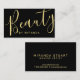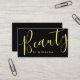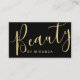 Professional Modern Black and Dourado Makeup Artist Cartão de visita com a palavra "beleza" no estilo de letra da caligrafia moderna no lado frontal e detalhes no estilo de letra sans serif moderno no lado traseiro. Perfeito para cabeleireiro, salão de beleza e muitas outras profissões. Note que os detalhes da folha são simulados no trabalho de arte. Não será utilizada nenhuma folha de alumínio real no fazer deste produto.